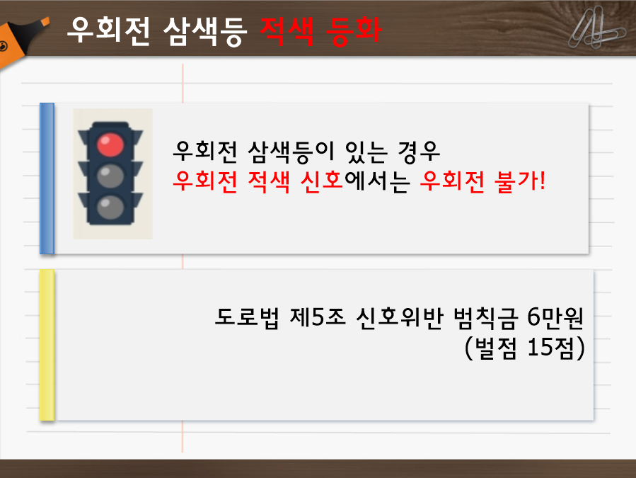 -우회전 삼색등이 있는 경우, 우회전 적색 신호에서는 우회전 불가합니다!