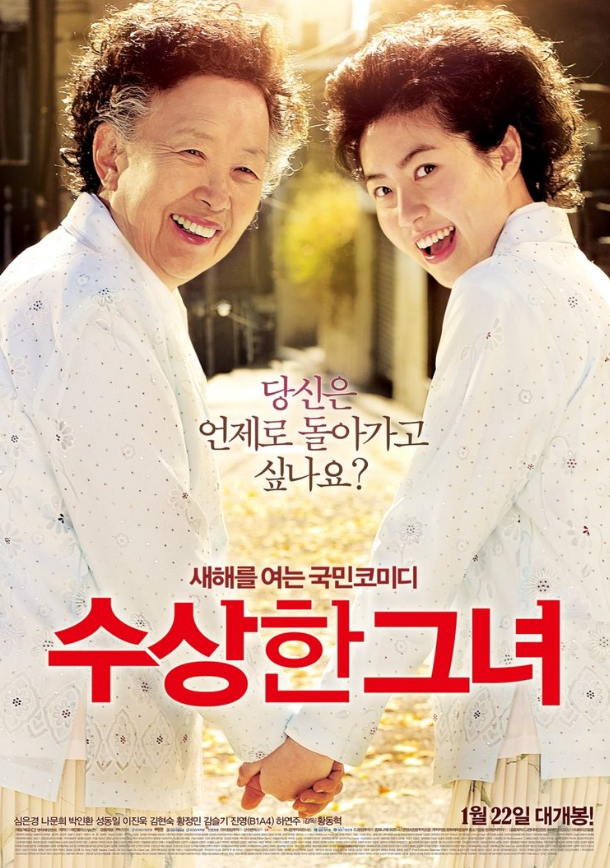 영화는 코미디, 판타지 장르의 영화로 오징어 게임의 황동혁 감독의 2014년 1월에 개봉한 영화이다. 개봉 당시 수상한 그녀는 겨울왕국1과 개봉 시기가 비슷하여 많이 밀리는 편이였는데, 그 이후 우리나라 명절 때 가족과 함께 볼 수 있는 영화로 많이 알려져 뒤늦게 많은 이들의 관심과 사랑을 받은 영화이다.