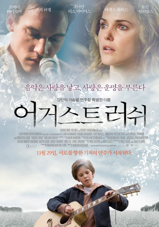 영화 <어거스트 러쉬>는 2007년 11월 29일에 개봉된 커스틴 쉐리단 감독의 음악영화로 고아 소년 에반(어거스트 러쉬)이 음악을 통하여 부모님을 찾는 과정을 그린 영화이다. 프레디 하이모어(에반 테일러/어거스트 러쉬), 조나단 리스 마이어스(루이스 코넬리), 케리 러셀(라일라 노바첵), 로빈 윌리암스(맥스웰 위저드 웰리스) 이 출연한다. 프레디 아이모어는 '찰리와 초콜릿 공장'의 주인공 찰리 역을 연기하여 유명해진 아역 영화배우로 할리우드에서 '착한 소년' 이미지의 대표자라 할 수 있다. 어거스트 러쉬 이후에도 꾸준히 작품 활동을 하고 있는데, 동안으로 유명하고 아역 시절의 준수한 외모를 잃지 않고 잘 성장하였다.