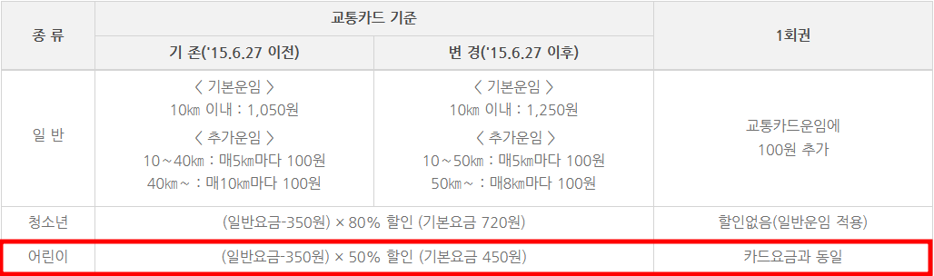 - 보호자를 동반 한 만 6세 미만 영·유아는 버스와 지하쳘 요금이 무료입니다.