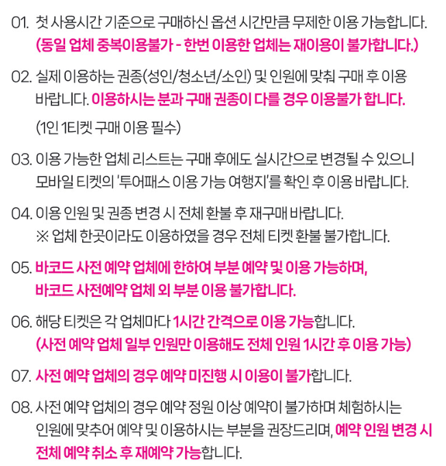 제주투어패스 유의사항