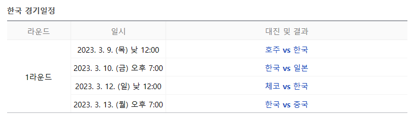 2023년 3월 8일~ 3월 23일 까지 제5회 월드 베이스볼 클랙식(WBC)이 개최됩니다~!